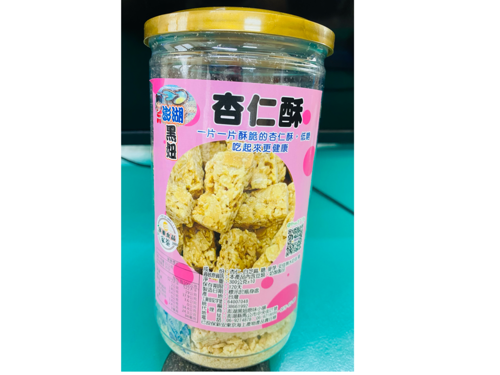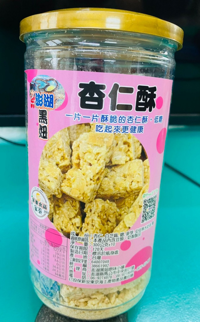 成份:腰杏仁酥、白芝麻、、糖、麥芽.安佳無水奶油、鹽過敏原資訊 : 本產品內含豆類、奶類製品淨重:300公克+-10保存期限:120天製造日期:標示於瓶身處產地:台灣工廠登記字號:64007048統編:38661992代理商:黑妞澎湖原味小舖
